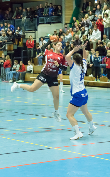 Nach der Pause konnte der TSV noch ein Tor erzielen und auf 10:13 verkürzen bevor der SC Vöhringen mit einem 6:0-Lauf auf 10:19 erhöhte. Trotz Überzahl gelang dem Gegner kein Tor und der SCV konnte in Unterzahl sogar zwei Tore machen. Erfolgreich für Vöhringen waren in dieser Phase Alicia Staigmüller (2), Leonie Schiller (2), Theresia Miller und Alexandra Frank. Geprägt war dieser Spielabschnitt von gut herausgespielten Chancen und guter Abwehrarbeit inklusive Torhüterparaden. Dieser Zwischenspurt sorgte 20 Minuten vor dem Ende für eine kleine Vorentscheidung. Mit dem 12:20 in der 50. Minute konnte sich Mara Hilsenbeck mit einem sehenswerten Rückraumwurf in die Torschützenliste eintragen. Nach zwei weiteren Treffern von Alicia Staigmüller legten die Coaches des SC Vöhringen die letzte Auszeit der Partie. In den letzten fünf Minuten ließ man die Gastgeber durch fehlende Konzentration einfache Tore erzielen und nochmal auf sechs Tore verkürzen. Den Schlusstreffer erzielte Alicia Staigmüller und die ersten zwei Punkte gehörten den Gästen aus Vöhringen.
