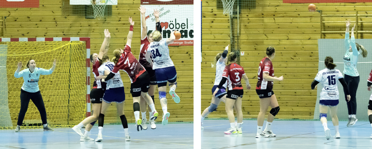 Ersatzgeschwächt durch einige Verletzungen durchlebten die SCV-Anhänger eine Woche später im Sportpark gegen das Tabellenschlusslicht TSV Bartenbach ein Wechselbad der Gefühle. Sowohl in der ersten als auch der zweiten Halbzeit erspielte man sich jeweils einen Vorsprung von fünf Toren, um diesen gegen Ende fast komplett wieder abzugeben. Alle sehnten den Schlusspfiff herbei und die Hallenuhr blieb dann auch beim Spielstand von 27:26 zugunsten der Vöhringer Damen stehen.