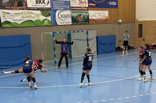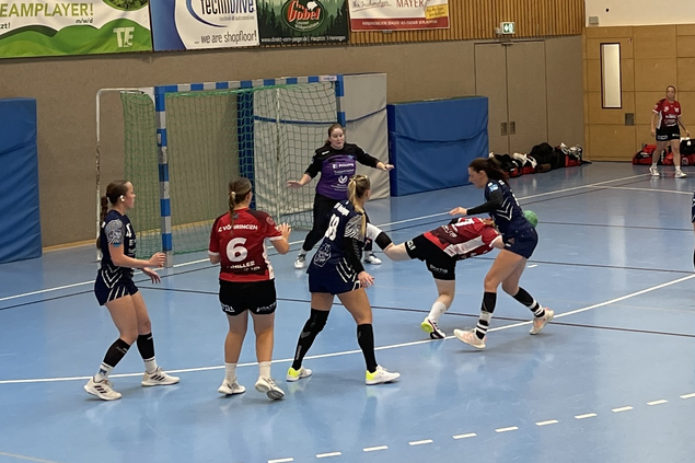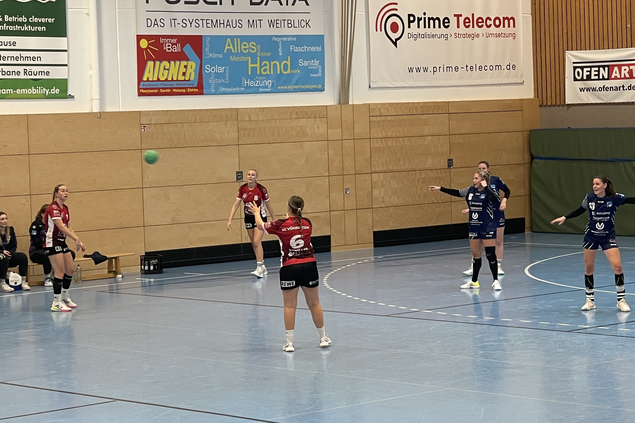 Von Anfang an war klar, dass die Begegnung eine der Schwierigeren werden wird. In den ersten 10 Minuten lieferten sich beide Mannschaften einen Schlagabtausch und vor allem die Außenspielerinnen Marina Gruber und Annika Hamm (2) starteten treffsicher ins Spiel. Doch leider konnte man sich in der Abwehr nicht rechtzeitig ordnen und der Gastgeber erzielte mit gutem Tempospiel Tor um Tor. Im Gegenteil hierzu schlichen sich bei den Vöhringer Mädels nach schönen Spiel-Auftakthandlungen vergebene Torchancen ein. Leider konnte auch die Auszeit vom Coachteam Andras Csuka und Anna Joos keine Besserung bewirken - bis zur Halbzeit scheiterte man bei allen drei 7 Metern an der gegnerischen Torhüterin. Auch eine Abwehrumstellung brachte nicht die gewohnte Sicherheit zurück und so zeigte die Anzeigetafel nach 30 Minuten 17:8. Neben Alicia Staigmüller (2), Theresia Miller und Lina Schiller konnte sich Carla Pfetsch in die Torschützinnenliste eintragen.