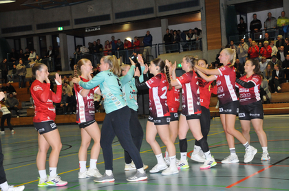 Nach dem Wiederanpfiff konnten die Gäste zwar zum 14:12 aufschließen, aber da legte Theresia Miller wieder Einspruch in Form von weiteren drei Treffern zum 17:13 ein. Dieser Vorsprung schmolz bis zum 20:18 zehn Spielminuten vor Ende, aber das Vöhringer Trainerduo Andras Csuka und Annabel Jooß hatte viel durchgewechselt und das sollte sich jetzt bezahlt machen. Alle SCV-Mädels hatten noch Reserven und insbesondere über die Außenpositionen wurden jetzt die wichtigen Points gemacht. So waren in dieser Phase mit Marina Gruber (2x), Leonie Schiller (2x) und Annika Hamm bis zum 22:18 durch die Bank die Mädels auf der Außenbahn für die Vöhringer Tore verantwortlich. Für das 24:19 sorgte wieder der Vöhringer Rückraum in Person von Victoria Giehle und Theresia Miller. Dann wurde Alicia Staigmüller mit einer direkten roten Karte des Feldes verwiesen; aus Sicht des Vöhringer Anhangs eine fragwürdige Entscheidung der ansonsten souverän leitenden Schiedsrichter. Doch die SCV-Mädels ließen sich die Butter nicht mehr vom Brot nehmen. Nadja Max entschärfte den fälligen Strafwurf und danach wurde die restliche Spielzeit von der restlichen Mannschaft clever zu Ende gespielt. Die Unterzahlphase wurde schadlos überstanden und kaum wieder komplett netzte Victoria Giehle zum 25:19 ein. Den Gästen gelang zwar noch der Anschlusstreffer, aber Annika Hamm setzte mit einem Aufsetzer den Schlusspunkt zum 26:20.