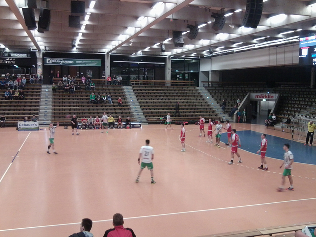 Die Anfangsphase der Partie verlief sehr ausgeglichen. George Stanciu und Manuel Scholz antworteten auf den Führungstreffer der Einheimischen, und Alexander Henze sorgte für das Vöhringer 3:2. Sandro Jooß mit einer Körpertäuschung zum 4:4 und Sven Schröder mit dem fünften SC-Treffer, ehe erneut Jooß auf 6:5 stellte. Tiago Azevedo traf mit einem Doppelpack für seine Farben, und der SCV geriet in Unterzahl. Bis zum 8:7 durch den erneut starken Sven Schröder hielt man den Anschluß, doch in der Folgezeit wollte es nicht mehr so recht laufen. In der Abwehr fehlte oft die letzte Konsequenz, und vorne suchte man dann doch zu überhastet den Abschluss, was die Gastgeber zu nutzen wussten. Nach dem 10:7 knallte der sehr auffällige Maximilian Friessnig den Ball zweimal in Folge aus dem Rückraum ins Netz, SCV-Coach Lutz Freybott bat seine Mannen zur Auszeit und Neusortierung. Dennoch wuchs der Rückstand auf 14:8 an, Sven Schröder und "Heimaturlauber" Philipp Ostheimer sorgten dafür, dass die Vöhringer Trefferanzahl auf der Uhr beim 16:10 zweistellig wurde. Auch wenn Manuel Scholz mit einem direkt verwandelten Freiwurf nach der Halbzeitsirene noch den elften Treffer für sein Team erzielte, das hatte man sich beim SCV doch anders vorgestellt.