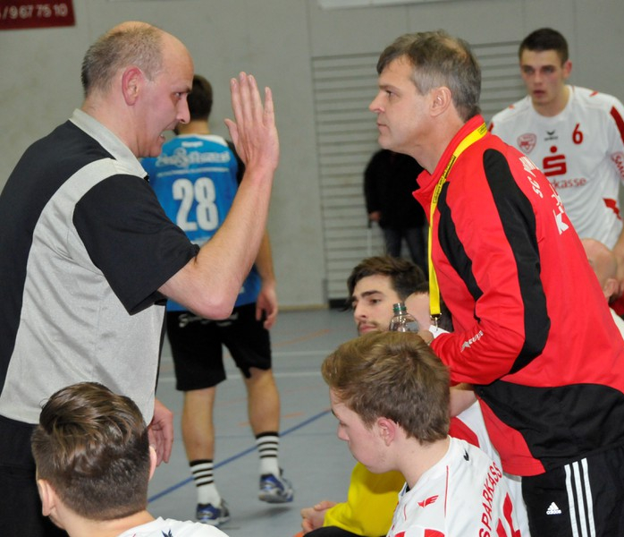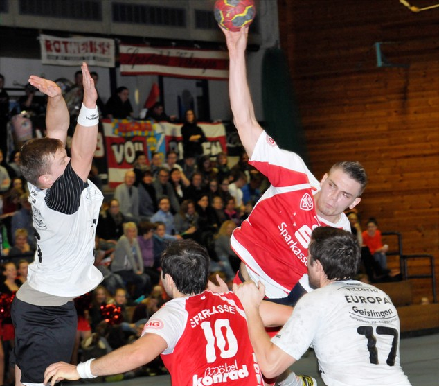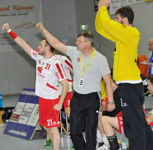 Jan Schaden und Daniel Matt verkürzten, André Bluhm und Alex Henze konterten zum 11:7 (20. Minute). Bei den Rot-Weißen war mittlerweile Sandro Jooß vom Auswärtssieg als Coach mit seiner SG Herbrechtingen/Bolheim eingetroffen und sorgte für Entlastung seiner Kollegen, während es die HSG mit einem Torwartwechsel probierte, für den glücklosen Ex-SCVler Markus Hinkelmann versuchte sich nun Tobias Henseler. Manuel Scholz netzte zum 12:7 ein, doch weil Henseler mehrmals parierte konnten die Gäste durch Baresel und Philipp Renner verkürzen. Doch auch Andrei Mitrofan – nach 15 Minuten ins Tor gekommen – hielt stark, André Bluhms 13:9 wurde zwar von Felix Junginger beantwortet, nur wenig später versetzte Linksaußen David Schuler seinen Gegenspieler zum 14:10. Sandro Jooß führte sich nach einem weiteren Junginger-Tor gut ein und setzte den Ball genau in die Lücke zum 15:11, ehe Junginger den Halbzeitstand herstellte.