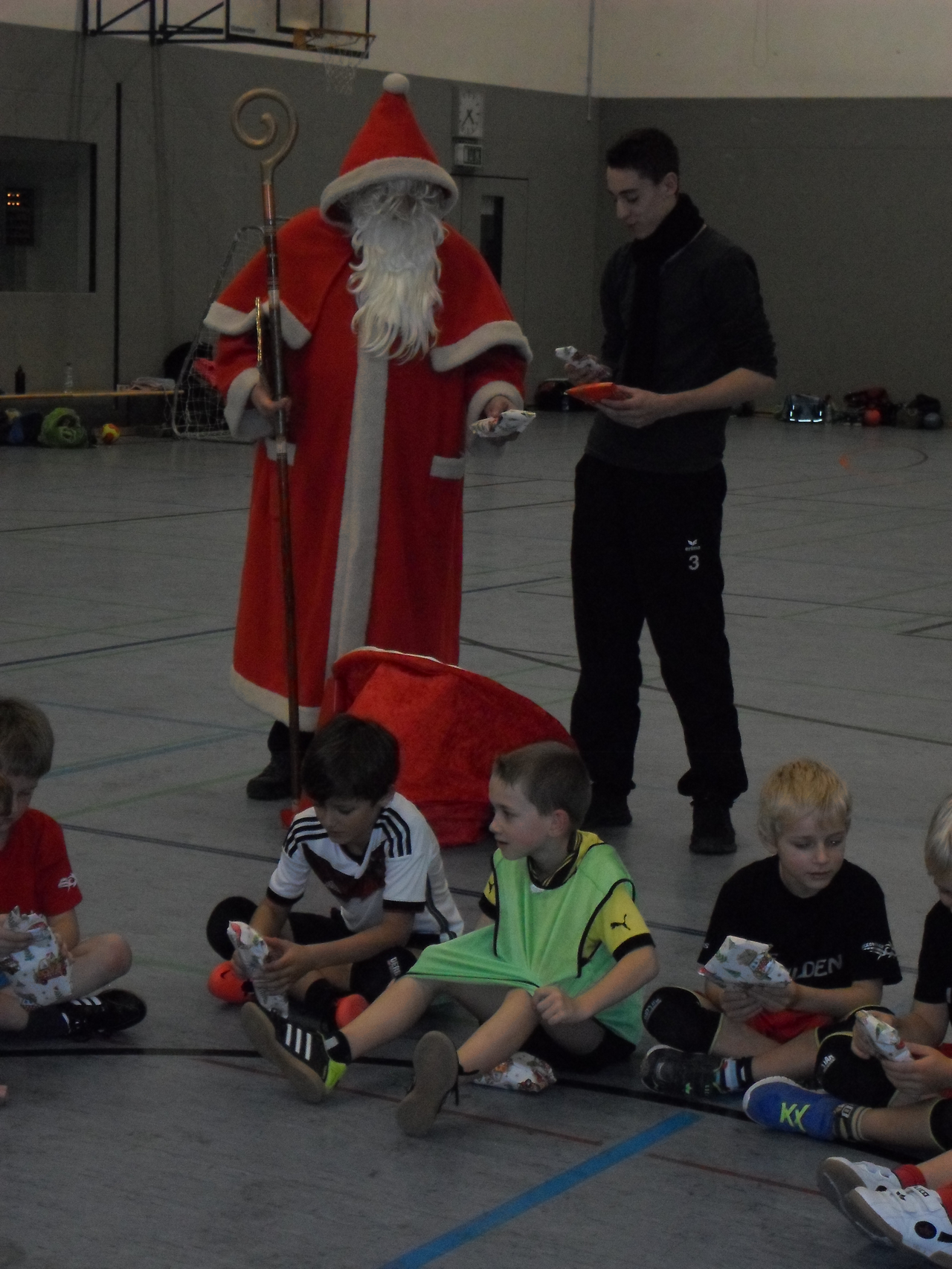 Als es am Freitag, den 5.12.14, während des Trainings an der Tür klopfte und mit einem Mal der Nikolaus die Halle betrat, staunten die Kinder nicht schlecht. Nachdem der Nikolaus aus seinem goldenen Buch vorgelesen und einige Kinder ein Gedicht vorgetragen haben, überreichte der Nikolaus jedem ein kleines Geschenk.