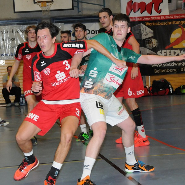 So benötigte man in der Anfangsphase einige Minuten, um sich zu finden und zu sortieren. Valentin Istoc, der zu alter Treffsicherheit zurückgefunden hatte, sorgte für die ersten drei Vöhringer Tore und das 3:3. Die Spielgemeinschaft blieb allerdings vorerst tonangebend, zwei Treffer Julian Fischingers ließen ein 7:4 von der Anzeigetafel leuchten (9. Minute). Der SCV ließ sich nicht abschütteln. Nochmals zogen die Einheimischen auf 9:7 und 10:8 an. Aber obwohl der Sportclub in Unterzahl geriet, glückte David Schuler nicht nur der Anschlusstreffer, mit zwei weiteren Einschüssen sorgte der stark aufspielende Linksaußen beim 11:10 sogar für die erstmalige Führung. Nach dem 12:12 (25.) griff Stefan Schramm zur grünen Karte, mit Erfolg. Die letzten beiden Tore (14:12) vor dem Seitenwechsel gelangen den Gästen.