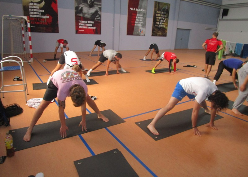 Viel Zeit zum Ärgern blieb nicht, einige Stunden Schlaf später traf man sich zur ersten Trainingseinheit in der Sportwelt Ottobeuren, wobei aufgrund der Personalsituation mit den Kräften gut gehaushaltet werden musste. Gunther Kotschmar und Christoph Klingler zogen ihr Programm trotzdem gut gelaunt durch, nach einer Indoor-Klettereinheit folgte ein Mini-Turnier in der Dreifach-Sporthalle mit einer reduzierten Spielzeit von 2 x 20 min.