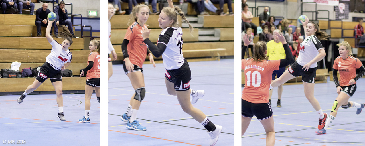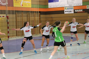 Beide Mannschaften starteten zu Beginn hoch konzentriert und legten eine vorbildliche Kampfmoral an den Tag. Trotz des Umstands, dass in Lonsee ohne Harz gespielt wird, konnte die Anzahl an technischen Fehlern im Vöhringer Spiel niedrig gehalten werden. Durch konsequent druckvolles Spiel im Angriff konnten insbesondere in der Anfangsphase unsere Außenspielerinnen Theresia Miller (2x) und Andrea Stanciu (3x) schön frei gespielt werden. Auch die Abwehrarbeit in einer offensiven 3-2-1-Abwehrformation funktionierte gut, sodass durch den ein oder anderen Ballgewinn mehrere Konter, meist erfolgreich abgeschlossen von Katrin Hafenrichter, eingeleitet werden konnten. Durch weitere Torerfolge von Annabel Allmendinger, Katrin Hafenrichter (3x), Katharina Vogel (2x) und Selina Schilder (2x) konnte zur Pause ein 4-Tore Vorsprung beim 9:13- Halbzeitstand herausgespielt werden.