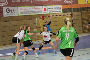 Trotzdem hielten die Vöhringer Frauen von Anfang an gut dagegen. Zwar ließ das Heimteam mit einer aggressiven und offensiven Deckung über die ganze Partie nur wenige Chancen zu, diese wurden aber anfangs konsequent genutzt. Annabel Allmendinger erzielte den 0:1-Führungstreffer per Siebenmeter. Zwei leichte Ballverluste ermöglichten Langenau zwar die 2:1-Führung, aber Selina Schilder egalisierte mit zwei schönen Rückraumtoren zum 3:3-Zwischenstand. Der SCV kassierte sehr früh zwei Zeitstrafen, das ließ aber das Team und insbesondere Theresia Miller aber kalt, denn einmal entwischte sie in Unterzahl ihrer Gegnerin und markierte etwas später erneut den Führungstreffer zum 4:5 Mitte der ersten Halbzeit. Dann hatte sich aber die Langenauer Abwehr auf die Vöhringer Offensive besser eingestellt und diese leistete sich bis zur Halbzeit noch einige unnötige technische Fehler sowie leichte Ballverluste. Da auch die Abwehr mehrfach von den druckvollen und schnellen Spielzügen des Heimteams ausgespielt wurde, war die über die gesamte Partie stark haltende Torfrau Sabrina Matt mehrfach machtlos und Langenau zog bis zur Pause zum vorentscheidenden 13:8 davon.