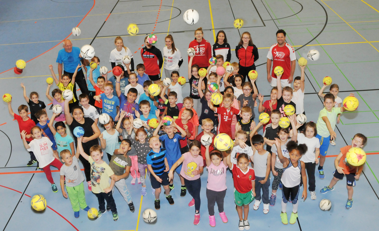 65 Kinder der Grundschule Süd nehmen am Handball-Aktionstag im Sportpark teil