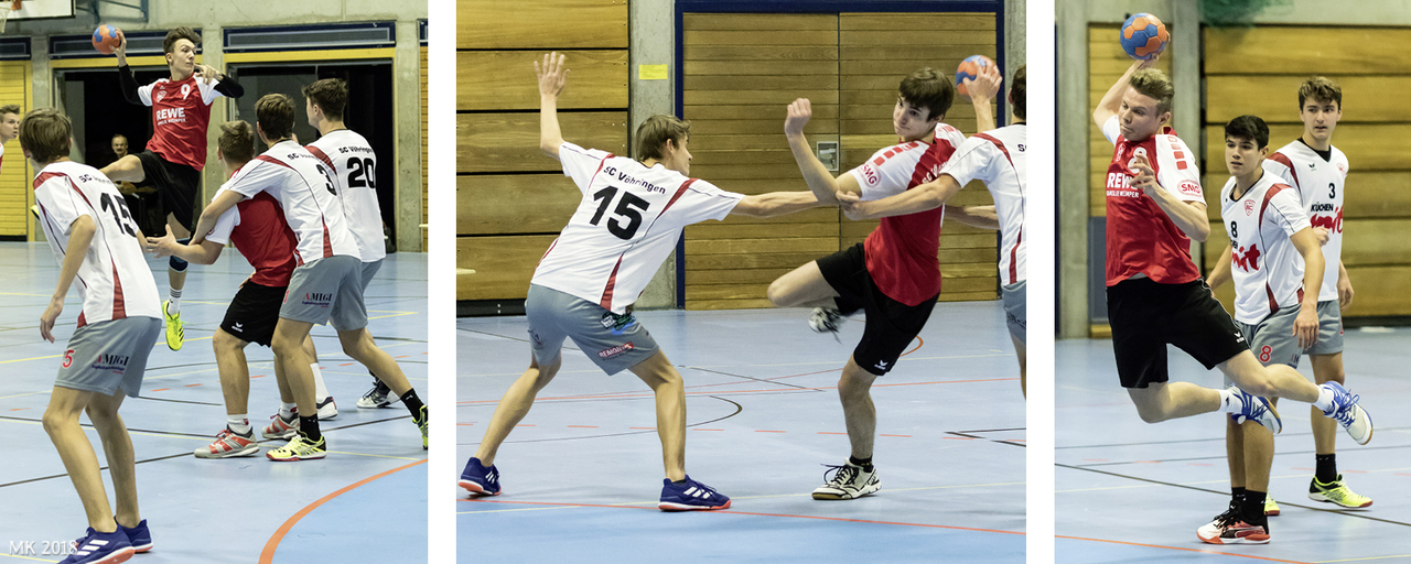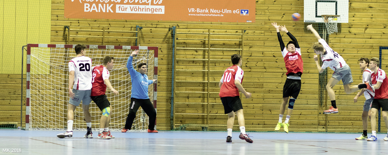 In einem hartumkämpften Spiel, mit vielen Zeitstrafen, gegen die HG Biessenhofen-Marktoberdorf gelang den Vöhringer Jungs am Ende doch noch ein unentschieden. Die Partie begann ausgeglichen, keine Mannschaft konnte sich absetzen, allerdings kassierte Vöhringen vor der Halbzeitpause beim Stand von 15:15 noch zwei 2-Minuten-Strafen und so gingen sie mit einem 15:16 Rückstand in die Halbzeitpause. In der 2. Halbzeit hatten die Gegner den besseren Spielfluss, so dass sich die HG bis zur 47. Minuten mit 8 Toren, beim Stand von 20:28 absetzten konnten. In der Schlussphase übernahmen dann aber wieder die Gastgeber das Spiel und konnten sich bis zum 31:31 herankämpfen – dies hatten sie unter anderem auch ihrem gut aufgelegten Torhüter zu verdanken, der in dieser Phase des Spieles nur noch 3 gegnerische Treffer zuließ.