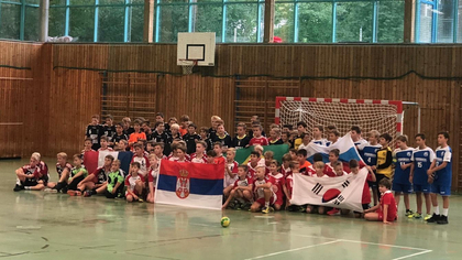 Handball-Weltmeister Dominik Klein hat dem SC Vöhringen Serbien zugelost und so fuhr man mit der Fahne im Gepäck zum ersten Mal nach Fürstenfeldbruck. Die Vorrunde war ein nervenaufreibendes Turnier. Gegen die Gastgeber, die Deutschland vertreten, und Königsbrunn (Frankreich) verlor man jeweils mit nur einem Tor. Gilching (Südkorea), Kempten (Russland) und einmal mehr in einer spannenden Partie Niederraunau (Brasilien) wurden dann aber besiegt und so zog der SCV überraschend in die Hauptrunde ein, in der jetzt die zwölf besten bayerischen D-Jugend-Teams stehen.