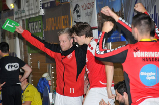 Wie zu erwarten ließen die Vorarlberger keine Zweifel aufkommen wer Herr im Hause ist und lagen in der 15. Minute beim 10:6 schon klar in Führung, der Vöhringer Zwischenspurt währte nur kurz, nach dem 12:13 durch Kevin Jähn sicherten sich die Hausherren mit vier Treffern in Folge den 16:13-Pausenstand.