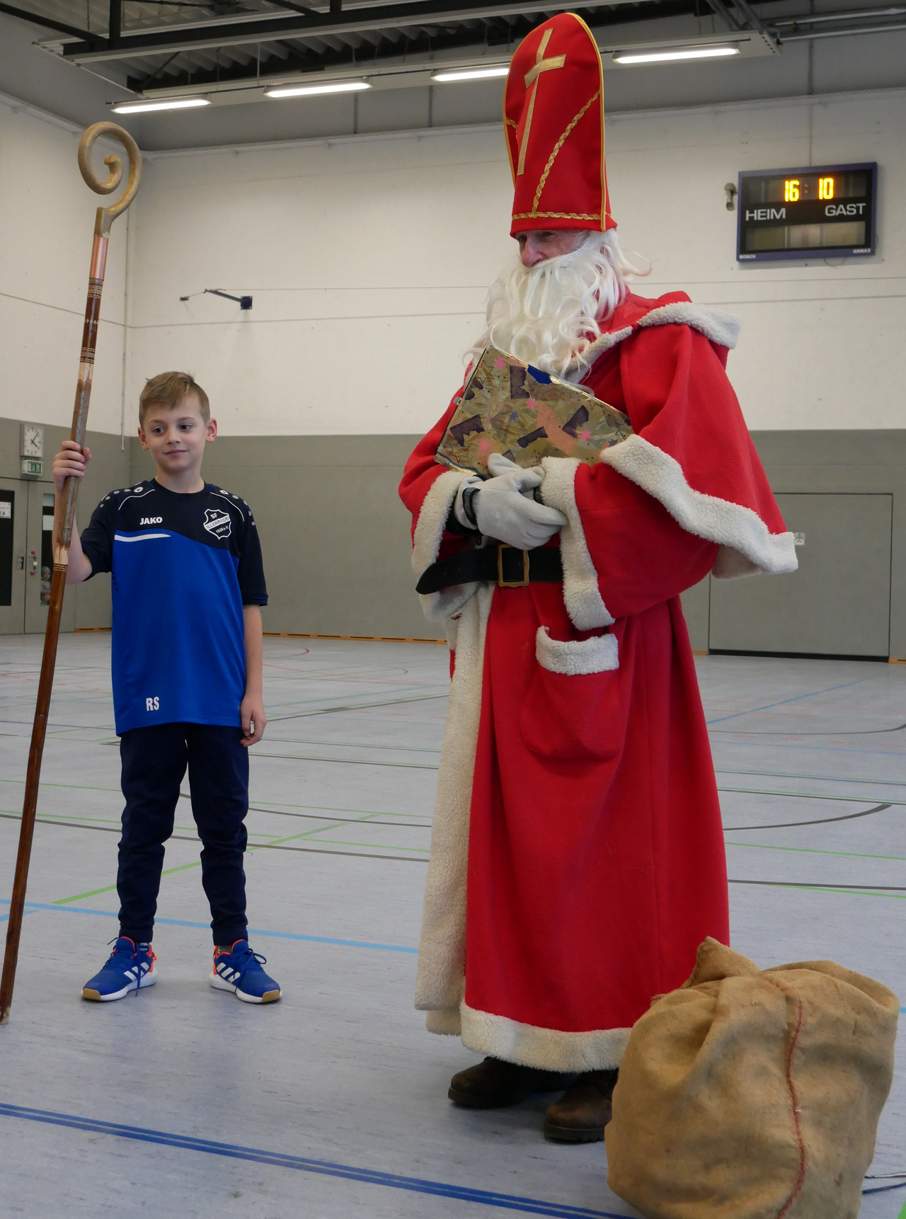 Raffael hält für den Nikolaus den Stab.