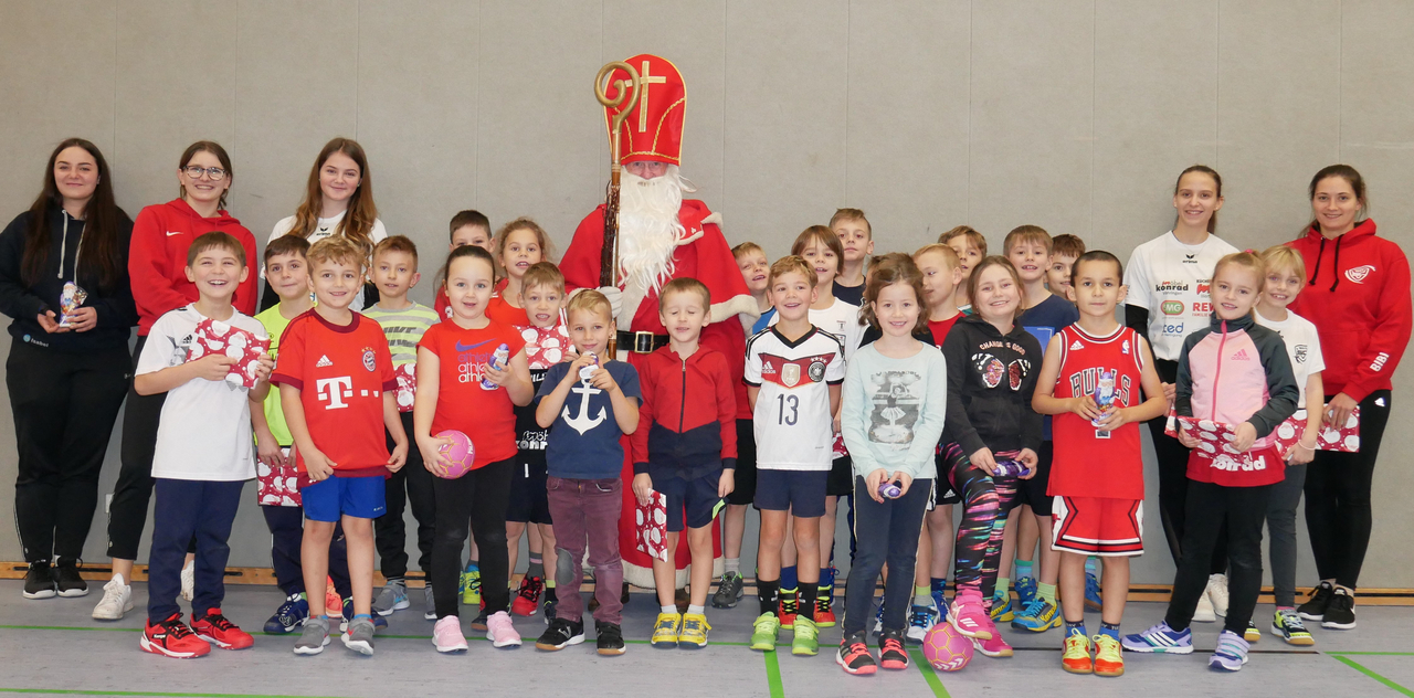 Ganz besonderen Besuch bekamen die Handball-Minis am 6.Dezember im Training. Der Nikolaus hat die Kinder mit kleinen Geschenken, Lebkuchen, Schokolade und Mandarinen überrascht. Er lobte die Kinder für die tolle Trainingsbeteiligung und freut sich sehr, dass das Minitraining so beliebt ist und großen Zuspruch findet.