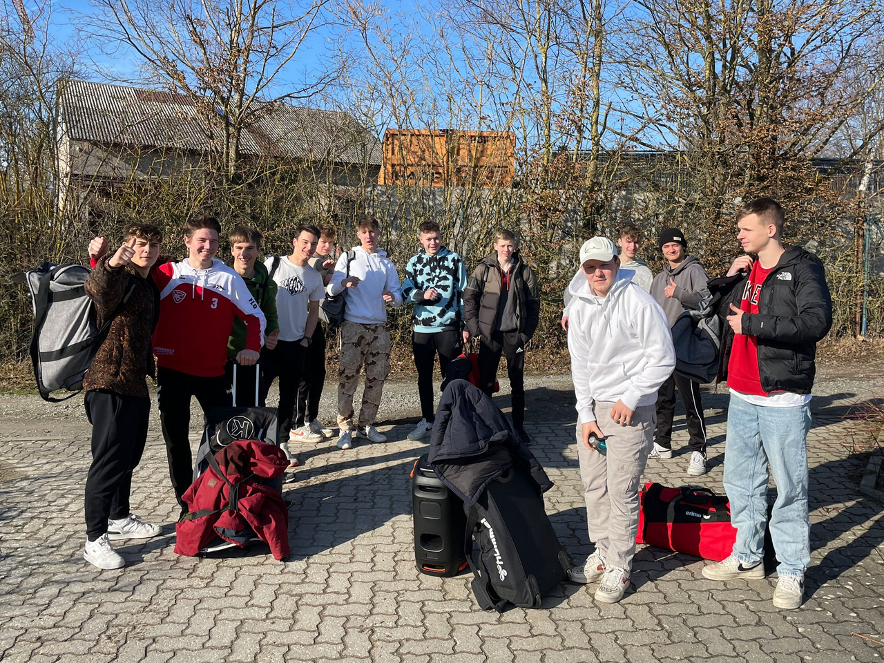 Die Abfahrtszeit war genau passend auf das Ende des Auswahltrainings des Bezirkes Schwaben im Sportpark gelegt. Dort war nahezu der komplette Kader der Vöhringer B-Jugend am Start. Der Bus war pünktlich da und die Jungs kamen frisch geduscht nach 2 Stunden Training direkt aus der Kabine in den Bus.