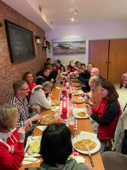 Nach der Dusche waren die Gesichter wieder normal und die lobenden Worte vom Trainer wurden akzeptiert. So wurde die 2-stündige Heimfahrt genutzt um Party zu machen, welche nach dem gemeinsamen Pizzaessen im Restaurant dann daheim beim Kapitän im Keller fortgeführt wurde. Das sind wir, das ist ein Team.