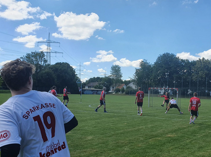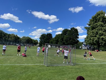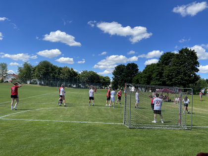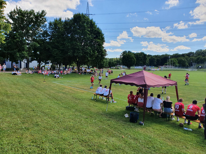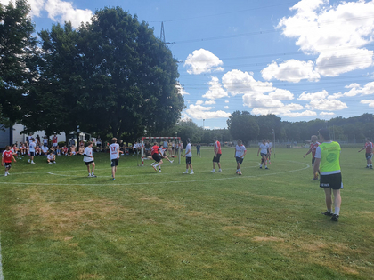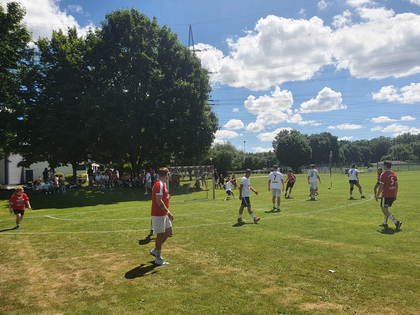 Bei fast 30 °C standen der Spaß und das gesellige Miteinander im Mittelpunkt und die zahlreichen Zuschauer nutzen den natürlichen Schatten der Bäume rund um das Spielfeld.