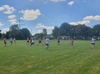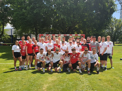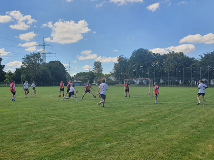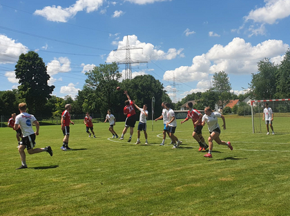 Fast 40 Handballer aus den Männer und Frauen sowie A- und B-Jugend Mannschaften spielten in bunt gemischten Mannschaften auf dem Rasenplatz an der Brandstraße gegeneinander.