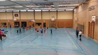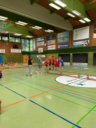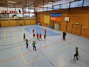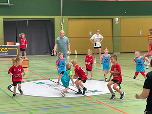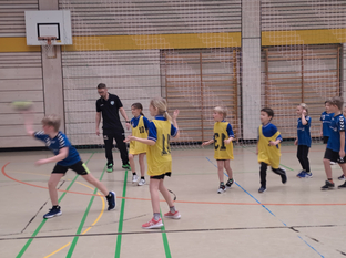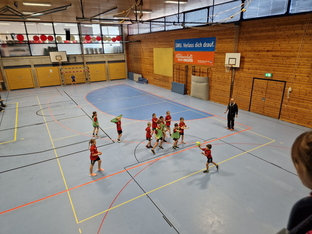 Der SCV stellte an diesem Vormittag zwei Mannschaften und insgesamt 12 Kinder aus Vöhringen nahmen teil. Mit zwei in etwa gleichstark aufgestellten Teams entwickelten sich spannende Spiele gegen die anderen Mannschaften. Jedes Team bestritt insgesamt 4 Spiel á 12 Minuten, so dass alle Sportler reichlich Spielzeit sammeln konnten. Die Mädchen und Jungen aus Vöhringen konnte mehrere Spiele gewinnen. Verständlicherweise freuen sie sich darüber, zählen sie dabei doch meistens im Kopf mit, auch wenn es offiziell keine Spielwertung oder Tabellen gibt.