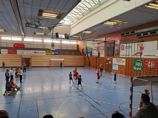 Für den Gastgeber SC Vöhringen hieß das natürlich, dass alle mitanpacken mussten und Dank der fleißigen Eltern war die Sportparkhalle schnell mit zwei Handballfeldern bestückt. Alle Hände voll zu tun hatte das Verkaufsteam, um dem Andrang gerecht zu werden.