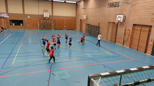 Im Team Vöhringen 2 befanden sich die jüngeren Spielerinnen und Spieler. Sie zeigten gemeinsam schöne Spiele und konnten sich mit mehreren eigenen Toren belohnen. In der Abwehr fehlte dagegen hin und wieder die Orientierung, wo sich gerade der Gegenspieler befindet.