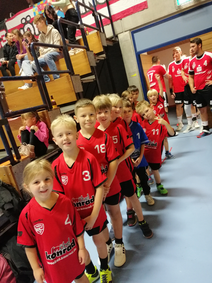 Am Sonntag war es für die jüngsten Spielerinnen und Spieler der F- Jugend so weit: Sie durften als Einlaufkinder mit der Männermannschaft aufs Spielfeld laufen. Beim Treffpunkt im Foyer merkte man den Kindern schon an, dass die Nervosität am Steigen war.
