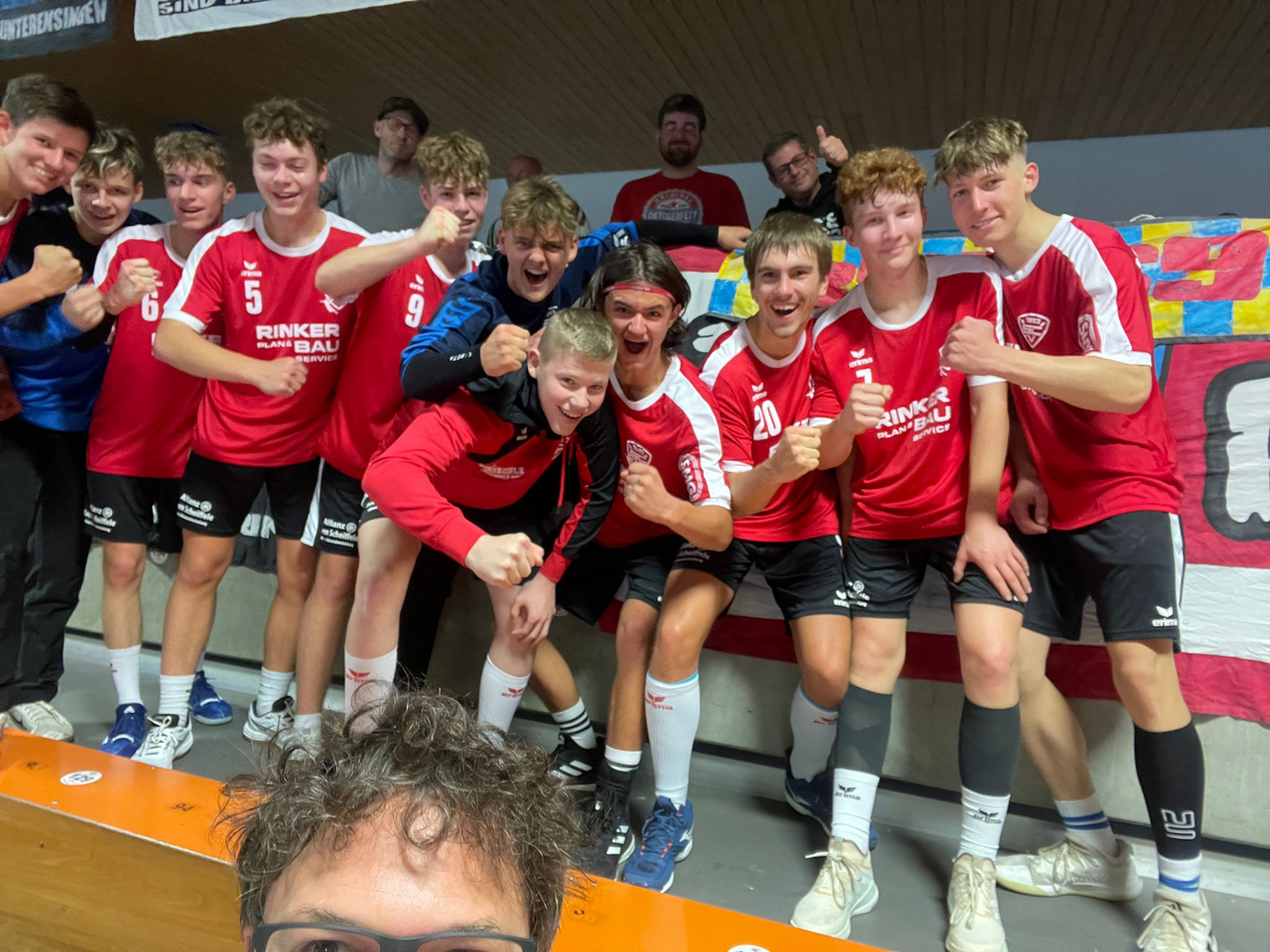 Peter Frank und Nikita Stang (beide Tor), Dejan Hoke, Niklas Tchorsch, Niklas Appenrodt (4), Joseph Stotz (5), Felix Gebhard (2), Luca Betz (1), Jeremias Hoke (3), Sven Eisenmann, Laurens Schug (4)
