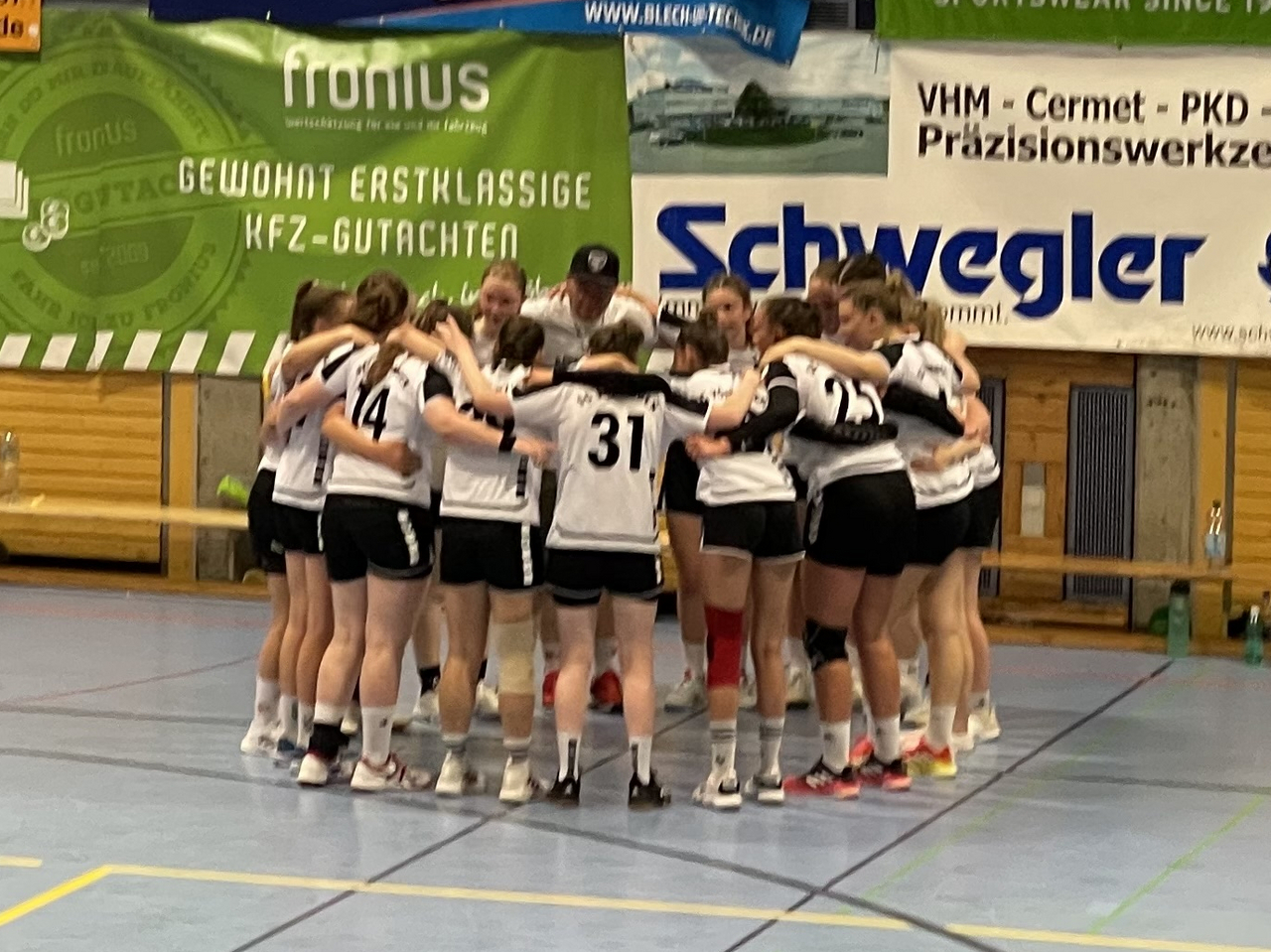 Die Gegner in der Viererrunde waren bis auf den HF Scheyern bekannt, mit der JSG Alpsee-Grünten traf die wA auf einen Kontrahenten aus der wB-Jugend Saison 2021/22 und der TSV Gilching ist ebenfalls kein Unbekannter. Konzentriert und hochmotiviert starteten die Mädels in das erste Spiel an diesem Tag gegen den HF Scheyern und zeigten mit einem 6:0 Lauf direkt was sie können. Auch bis zur Halbzeit wurden die Anweisungen des Trainergespanns umgesetzt und somit konnte beim Halbzeitstand von 11:4 kurz durchgeatmet werden. Das Spiel wurde auch nach der Halbzeit souverän gestaltet, es kamen alle Mädchen zum Einsatz und jede bekam ihre hochverdiente Pause. Bis zum Endstand von 23:12 ließen die Vöhringerinnen nichts anbrennen und konnten sich somit über ihren ersten Sieg freuen. Direkt im Anschluss war das zweite Spiel gegen die JSG Alpsee-Grünten, leider verlief der Anfang nicht wie gewollt und so wurde das erste Tor erst in der achten Minute durch Annika Buchberger geworfen. Auch der Rest der ersten Halbzeit war holprig und durch Ungenauigkeiten und Unkonzentriertheit des Angriffspieles stand es zur Halbzeit nur 3:3. Zu viele Torchancen wurden zudem nicht verwandelt, diese Fehler konnte der Gegner jedoch unter anderem durch die starke Abwehr nicht für sich nutzen. Die Halbzeitansprache hatte Wirkung, denn im Angriff wurden technische Fehler reduziert und die Abschlüsse aufs Tor kamen platzierter. Dadurch gelang den SCV-Mädels ein Zwischenspurt zum 9:3 und diese Führung wurde auch nicht mehr hergegeben. Der zweite Sieg war nach 40 Minuten mit 12:8 in der Tasche. Nach dem Spiel gegen die JSG hatten die Mädels zwei Spiele Pause und konnten sich ein wenig erholen. Ohne Druck ging der SC Vöhringen in sein drittes Spiel an diesem Tag gegen den TSV Gilching. Nachdem die ersten sechs Minuten der Partie noch ausgeglichen verliefen, merkte man den Mädchen an, dass ihnen die zwei Spiele in den Knochen steckten. Durch erneute Unkonzentriertheiten im Angriff gelang es dem TSV einige einfache Tore durch Tempogegenstöße zu erzielen, was zum Halbzeitstand von 9:4 aus Sicht der Gilchinger führte. Trotz der Ansprache in der Kabine konnten die Vöhringerinnen ihre Stärken nicht mehr auf die Platte bringen und wurden im Spielaufbau öfters durch verletzungsbedingte Auswechslungen gestört, sodass Gilching seinen Vorsprung bis zum Schluss auf 22:7 ausbauen konnte - eine zu hohe Niederlage für das Vöhringer Team.