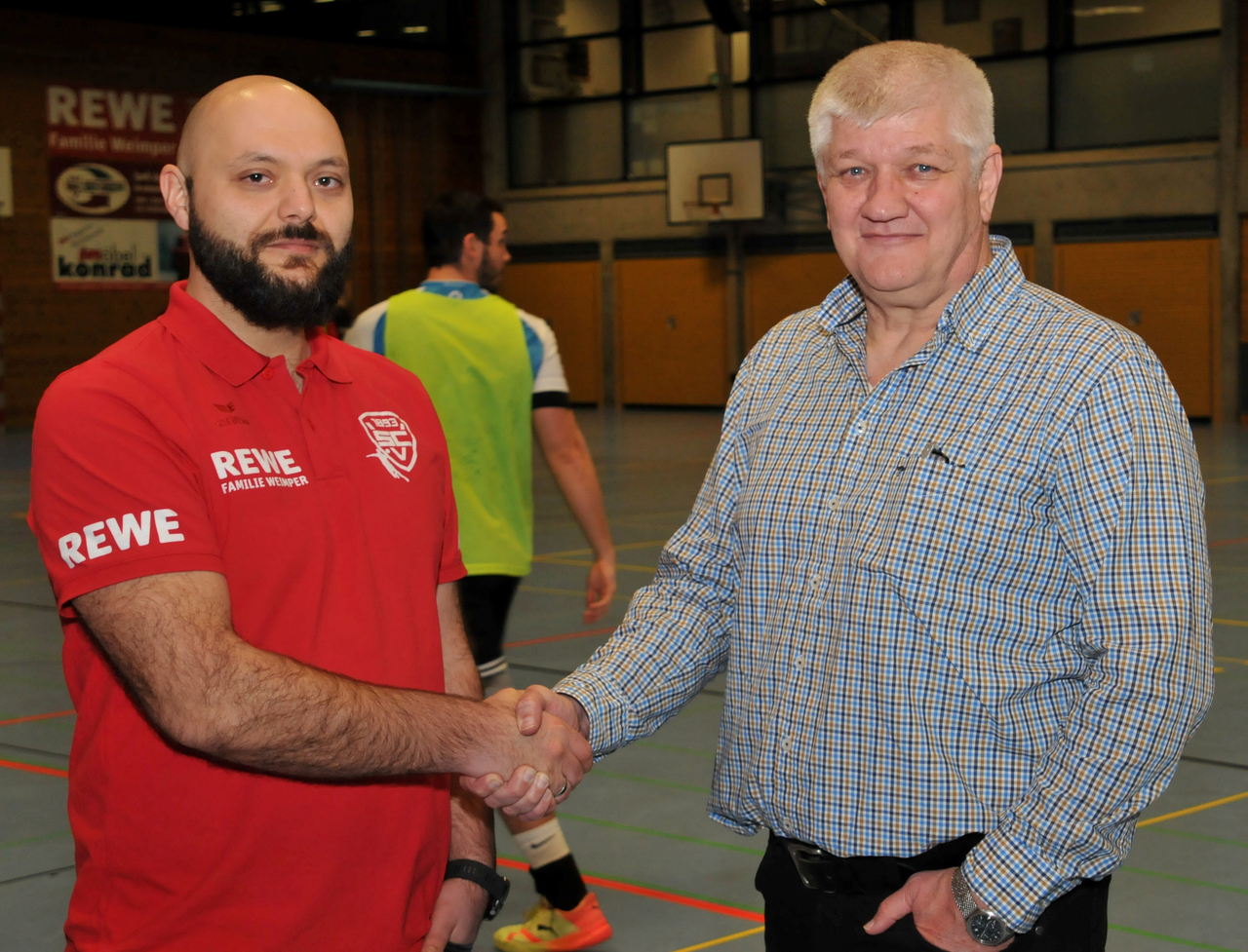 Manch alteingesessener Fan kennt diese vier Worte nur zu gut, zierten sie doch jahrelang die erste Seite des ehemaligen Handball- Kuriers, dem Vorgänger des SCV- Aktuell. Damals agierte die erste Mannschaft noch in blauen Trikots. Das Oberteil mit der Nr. 9 trug ein gewitzter Kreisläufer, der für seine trickreichen 7m- Würfe bekannt war. Als Teil des legendären SCV-Teams mit Schobel, Kosche, Werner Brugger und weiteren gelang mit ihm in der Saison 1991/92 der Aufstieg in die damalige Süddeutsche Regionalliga, in der im darauffolgenden Jahr der sechste Platz erreicht wurde. Viel Wasser ist seitdem die Iller hinuntergeflossen und in der Vöhringer Sporthalle blieben viele schöne Erinnerungen an den sympathischen Sportler, der den gleichen Vornamen wie unser Abteilungsleiter trägt und auf den Spitznamen „Teddy“ hört. Hat ihn schon jemand erkannt? Richtig, es handelt sich im Werner Pointinger, den neuen Trainer an der Seitenlinie. Mehrere Anläufe und Versuche von Werner Brugger waren notwendig, um W. Pointinger verpflichten zu können.