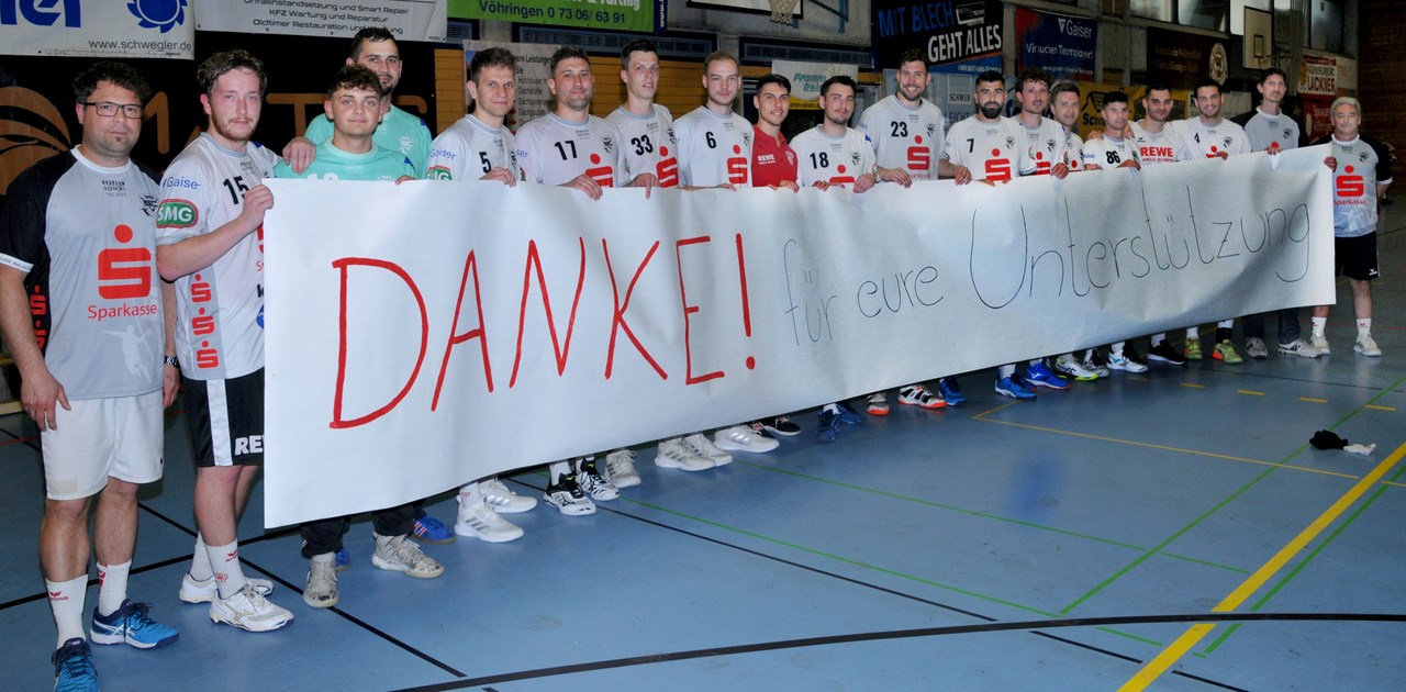 Den Glanz im Saisonfinale überließen unsere Mannen gleichfalls dem TV Gerhausen, der sich mit Füßen und vor allem mit Händen gegen seinen drohenden Abstieg wehrte. So wurde die Spielzeit mit 28:31 beendet. Dennoch wurden wir Zweiter der Landesliga, da auch Hohenems bei seinen letzten drei Spielen, darunter zwei zu Hause, patzte. Durch das bessere Abschneiden im direkten Vergleich, schoben wir uns noch trotz Punktegleichstand knapp am Handballclub vorbei.