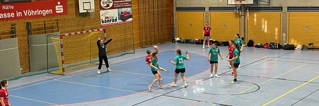 Von der ersten Minute an waren die Vöhringer hell wach. Eine sehr starke Abwehrarbeit zeigte sich von Anfang an. Die Mädels sind gut verrutsch und haben sehr gut zusammengearbeitet. Auch das Angriffsspiel war sehr lobenswert. Durch das Stoßen in die Lücken, schöne Kreisanspiele und gut ausgespielte Spielzüge konnte die Heimmannschaft in den ersten 10 Minuten mit 3 Toren in Führung gehen. Allerdings ließen die Leipheimerinnen nicht nach und konnten somit in der 16. Minute ausgleichen. Die Gastgeberinnen spielten leider nicht mehr so konzentriert und ruhig, was zu vielen technischen Fehler führte. Aber dank der guten Abwehr und der erneut sehr starken Torhüterparaden von Emily konnten die Gegner nur mit einem Tor davon ziehen. In der 25. Minuten schaffte Amelie H noch rechtzeitig den Ausgleich. So konnte die 2. Halbzeit mit einem Unentschieden starten.