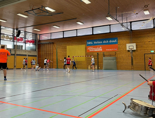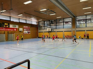 Der Start in das Spiel war schwer, jedoch konnte Romy den ersten Treffer für die SCVlerinnen landen und mit einem verwandelten 7m-Wurf zum 2:2 wieder ausgleichen. Danach erfolgte ein schönes Anspiel an den Kreis, mit einem Torerfolg durch Johanna. Die Partie war auf Augenhöhe bis zum 4:5. In der verbleibenden Zeit bis zur Halbzeit schlichen sich einige Fehler, Unsicherheiten und Unkonzentriertheit im Angriff ein. Lediglich 3 weitere Tore wurden von Rabea, Lenja und Sophia erzielt. In der Abwehr ließ man viel zu leicht Würfe zu, so dass man mit einem Halbzeitstand von 7:11 in die Kabine ging.