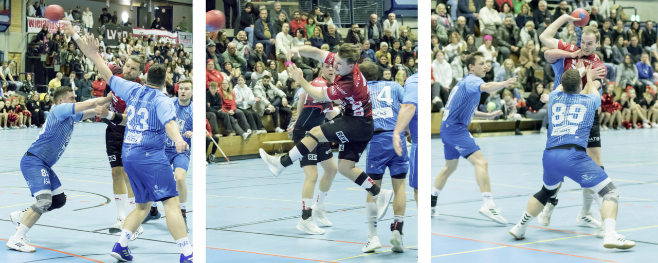 Zuerst schwächten sich die Biberacher selbst, als der Schiedsrichter gleich zwei von ihnen wegen Motzens vom Feld stellte. Der SCV hätte sozusagen freie Fahrt gehabt alles klarzumachen. Stattdessen leistete man sich einfache Fehler, vergab einen Angriff nach dem anderen und überließ die Show den Biberachern, die in Unterzahl aufopferungsvoll kämpften und innerhalb von drei Minuten wieder mit 20:20 auf Augenhöhe waren. Eine Auszeit auf Vöhringer Seite war die Folge. Das hinderte die Hausherren zunächst nicht mit 21:20 erst mal in Führung zu gehen.