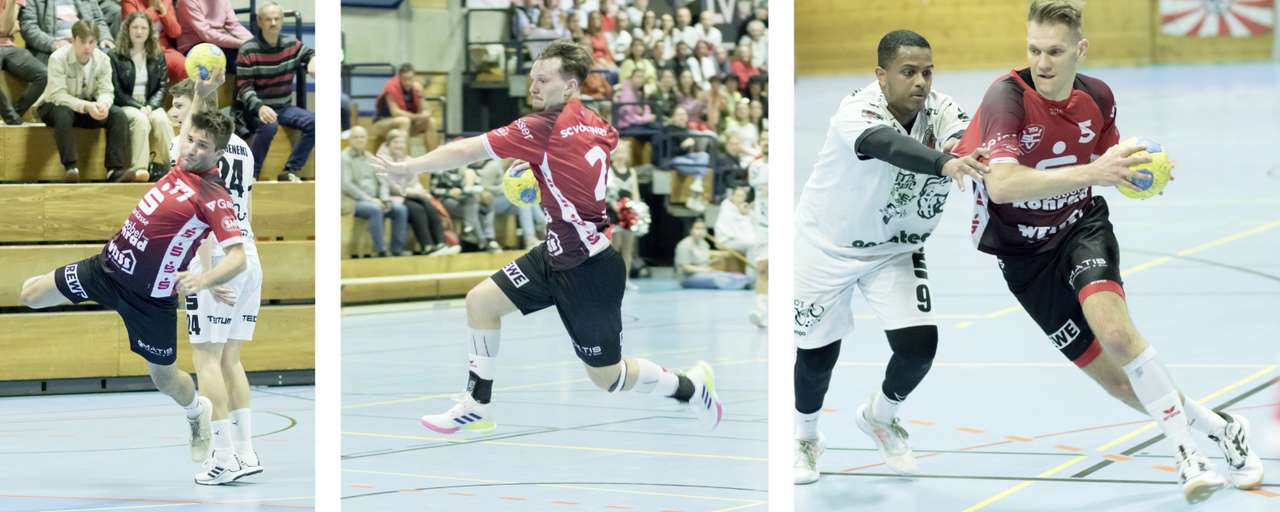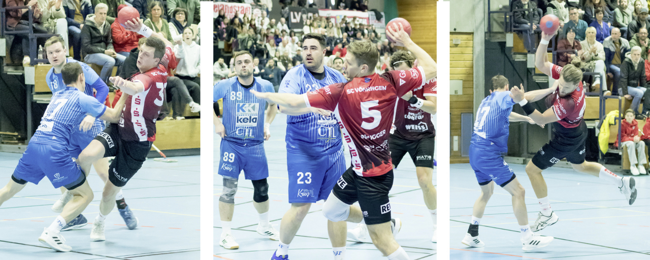 Mit einem Blitzstart in die 2. Hälfte brachte sich der SCV selbst wieder in Position. Vier Treffer in 80 Sekunden drehten das Spiel zum 15:13. Je 2 Treffer durch Matijevic über den Kreis und von außen und zwei Konter von Brugger brachten die Rot-weißen schnell wieder in die richtige Spur. Zwischen der 33. und 41. Minute spielte der SCV komplett in Unterzahl, ohne dass man davon größeren Schaden genommen hätte. Matijevic war der erste mit Zeitstrafe, den folgenden Strafwurf verwandelten die Gäste durch Stuber zum 15:14. Aus dem Rückraum traf Pointinger zum 16:14, erneut die Gäste durch Stuber 16:15, der dabei noch eine Zeitstrafe für die Gäste rausholen konnte. In der 36. Minute musste der Vöhringer Heiter mit Rot vom Platz, der SCV nur noch zu viert auf dem Feld. Den Gästen gelang es nicht, aus der Überzahl mehr Kapital zu schlagen. Der SCV verteidigte beherzt und Torhüter Mitrofan konnte immer mal Bälle entschärfen. Nach dem 18:18 folgte eine starke Phase der Gastgeber. Bis zur 46. Minute setzte sich der SCV auf 23:19 ab, 4x traf dabei der heutige Torgarant Hoke per Konter oder über Außen. Hinten entschärfte Mitrofan zwei freie Bälle und half seinen Vorderleuten. Eine Auszeit der Gäste und der SCV in Unterzahl unterbrachen den Lauf und nach nur vier Minuten stand es wieder 23:23, weil sich Vöhringen mit einem Stürmerfoul und einfachen Ballverlusten das Leben schwer machte. Die dritte Auszeit brachte die Rot-weißen wieder in die Spur, die Youngsters Betz und Hoke trafen zum 25:23. Diese Führung gab der SCV nicht mehr ab. Brugger traf zum 28:25 drei Minuten vor dem Ende, doch zwei schnelle Tore von Lauterstein ließen es beim 28:27 nochmals spannend werden. Erneut Betz vom Kreis netzte zum wichtigen 29:27 vor der letzten Minute. Der starke Linkshänder Kümmel traf zum Anschluss bei noch 45 Sekunden auf der Uhr. Vöhringen im Ballbesitz, geriet schnell ins Zeitspiel und musste werfen. Vom Torhüter ging der Ball ins Seitenaus und die Uhr konnte runtergespielt werden. Den Schlusspunkt setzte Guckler zum 30:28 mit der Schlusssirene.