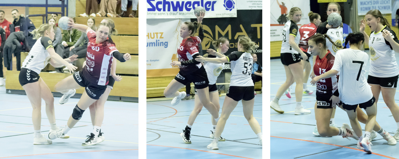 Nach einer recht ausgeglichenen Anfangsphase fanden die Vöhringerinnen durch eine stabile Abwehr inklusive Torhüterin und schnelles Angriffspiel immer besser in die Partie und erhöhten innerhalb von zehn Minuten von 6:4 auf 12:5. Bis zur Halbzeit baute der SCV seinen Vorsprung auf acht Tore aus und hielt die HSG weiter auf Abstand.