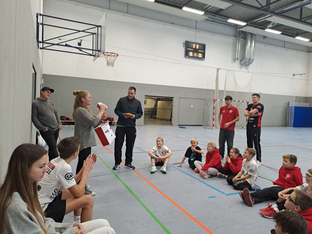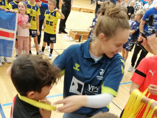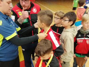 Neben Kinderschminken, Dartfußball-Wand und Hüpfburg war auch noch Handball- Prominenz in der Kuhberghalle anwesend. Markus Gaugisch (Nationaltrainer der Frauen) und die Spieler David Schmidt, Bart Ravensbergen und Ludvig Jurmala (alle Frisch-Auf Göppingen) waren für eine Autogrammstunde und Bilder vor Ort. Diese Möglichkeit wurde natürlich von allen Kinder genutzt und es wurden Unterschriften auf allen möglichen Gegenständen gesammelt: Autogrammkarten, Bälle, Schuhe, T- Shirts…..