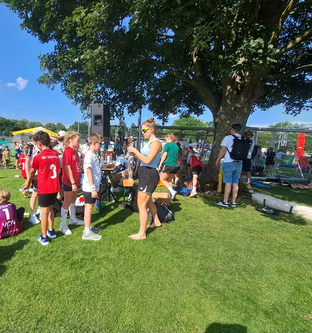 Zwischen den Spielen nutzte man die Möglichkeit, um bei den Minis zuzuschauen oder die weibliche D-Jugend auf dem Weg zum Turniersieg zu unterstützen. Die obligatorischen Pommes und Eis durften neben einer Wasserschlacht natürlich auch nicht fehlen. Für alle Kinder ein schöner Turniertag beim Top organisierten Turnier in Brenz.
