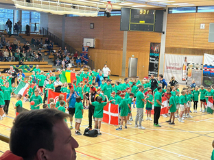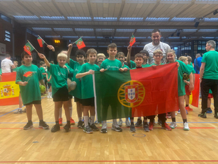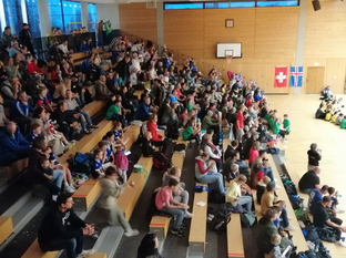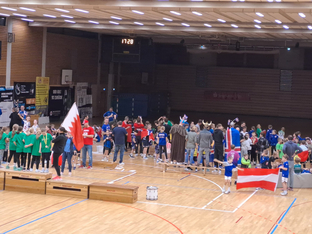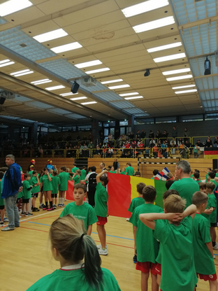 Für die Kinder ein großartiges Erlebnis vor hunderten von Zuschauern zu spielen. Das ganze Wochenende herrschte ein hoher Lärmpegel in der Halle, da jedes Land seinen Fans mitbrachte und diese für ordentlich Stimmung sorgten.