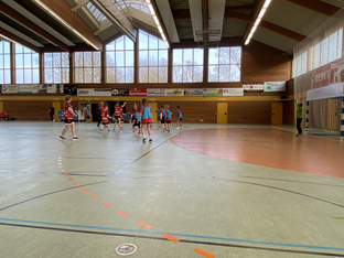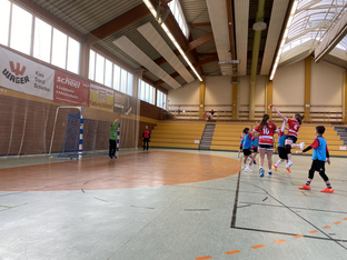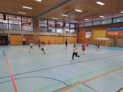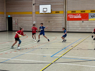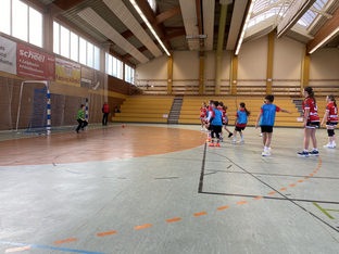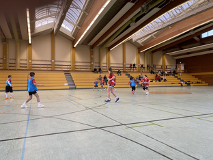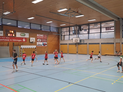 Im zweiten Spiel trat die gemischte E-Jugend des SC Vöhringen gegen die weibliche D-Jugend aus Gundelfingen an. Anfangs agierten die Spielerinnen und Spieler noch etwas zurückhaltend und ehrfürchtig, doch schnell merkten sie, dass sie mithalten konnten. Mit viel Laufbereitschaft und Ballsicherheit auch auf engem Raum spielten sie sich immer wieder Chancen heraus und erarbeiteten sich zahlreiche freie Würfe. Auch in der Abwehr wurde beherzt zugegriffen und es gelang sogar, einige Ballgewinne zu erzielen.