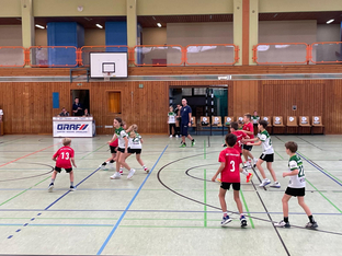 Im ersten Spiel gegen Niederraunau 2 bekamen die Zuschauer sehenswerten Kinderhandball geboten. Beide Teams lieferten sich ein ausgeglichenes Duell mit hohem Einsatz und großer Laufbereitschaft auf beiden Seiten. Am Ende konnte sich der SCV knapp mit 11:9 durchsetzen.