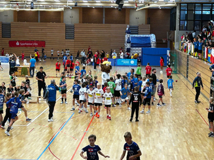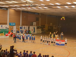 Große Bühne herrschte dann für das Finale der beiden Teams von Dänemark (SG Ulm/ Wiblingen) und Kroatien (HC Winnenden): Einmarsch der Nationen, Aufstellung auf dem Spielfeld, Nationalhymnen, Vorstellung der Schiedsrichter und volle Zuschauerränge. In einem hochklassigen Spiel setzte sich Dänemark durch und konnte den Titel nach Wiblingen holen. Herzlichen Glückwunsch.