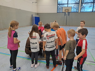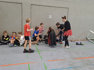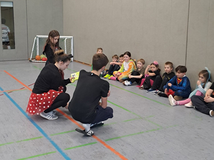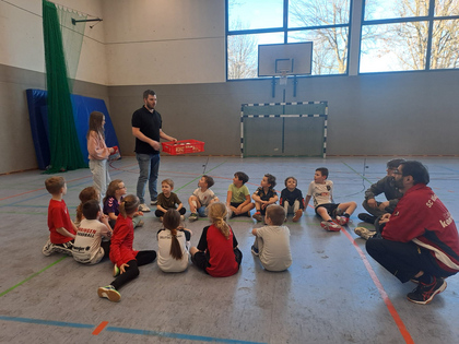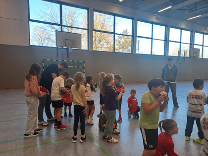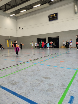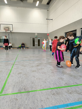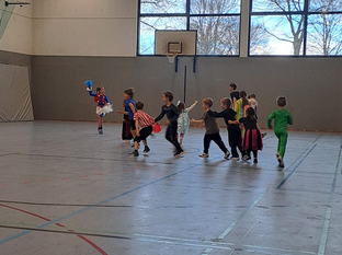 Es wurden verschiedene Spiele gespielt, bei denen ungeahnte Talente zum Vorschein kamen — auch wenn so manche Fähigkeit beim Handball vielleicht nicht unbedingt gebraucht wird. Der Laufballonlauf und der Eierlauf sorgten für viele Lacher, und zum Abschluss gab es Bewegungsspiele mit fröhlicher Faschingsmusik.