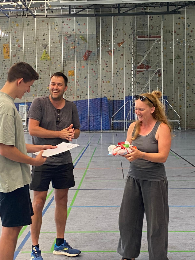Im Rahmen des letzten Trainings haben sich die Kinder und Eltern von Felix verabschiedet und ihm mit einem kleinen Geschenk ihren Dank ausgesprochen.