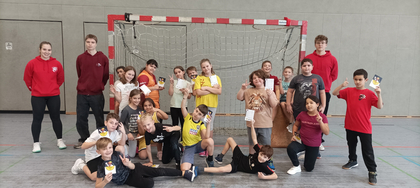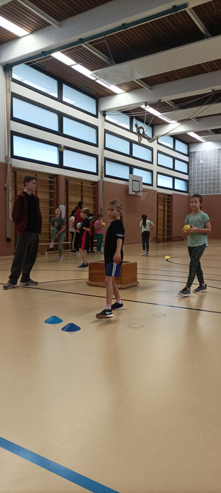 Die Schüler*innen konnten beim offiziellen Handball-Spielabzeichen des DHB – dem Hanniball-Pass – ihre persönlichen Fähigkeiten testen. An mehreren Stationen wurden Treffsicherheit, Ballgefühl und Beweglichkeit trainiert, und jedes Kind erhielt seinen persönlichen Hanniball-Pass als Urkunde.