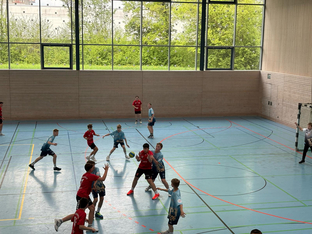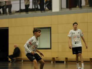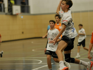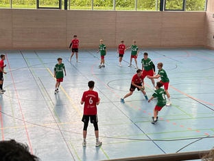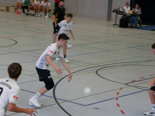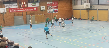 Nach einem Spiel Pause ging es gegen TSG Schnaitheim, dem augenscheinlich stärksten Gegner in der Gruppe, um den Gruppensieg. In den ersten Spielminuten verlief das Spiel noch ausgeglichen, doch ab Spielminute 4 zündeten die Vöhringer Jungs den Turbo und dominierten mit ihrem Tempospiel das Geschehen in der Halle und feierten einen in der Höhe nicht erwarteten 18:12 Sieg.