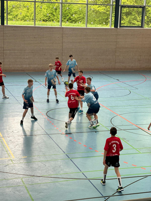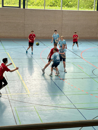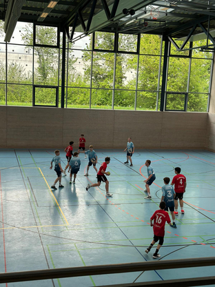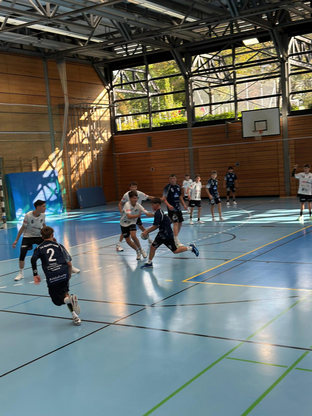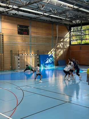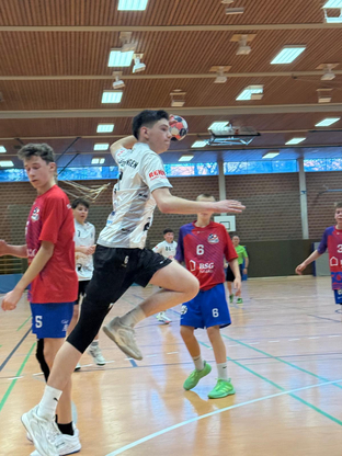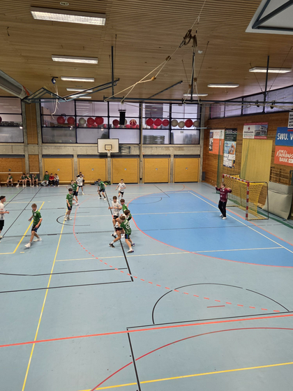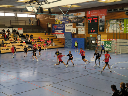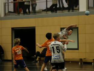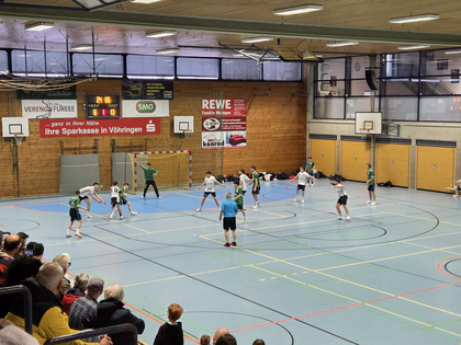 Zu Spielbeginn fehlte die geistige Frische und so war man in der Abwehr oft einen Schritt zu spät und im Angriff leistete man sich einige leichte Ballverluste gegen eine sehr früh angreifende Waltenhofener Mannschaft. So stand es nach 10 Minuten 5 : 5 Unentschieden, was aus SCV-Sicht vor allem unserem Torwart Lenny zu verdanken war. Jedem Vöhringer war bewusst, dass eine Steigerung nötig ist, um dieses Spiel zu gewinnen. Und die jungen SCV-ler zeigten nun welches Talent in ihnen steckt, bissig in der Abwehr und mit dem schon gewohnten Tempohandball erspielte man sich bis 30 Sekunden vor dem Halbzeitpfiff eine 23 : 12 Führung. Durch 2 leichtsinnige Fehler konnte der TV Waltenhofen noch auf 23 : 14 zur Halbzeit verkürzen. Zu diesem Zeitpunkt war das Spiel äußerst fair, je eine Zeitstrafe pro Mannschaft und auch keinerlei Unterbrechungen wegen Verletzungen.