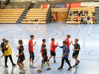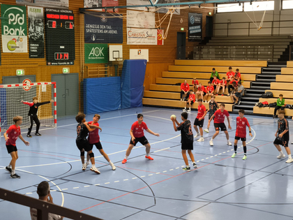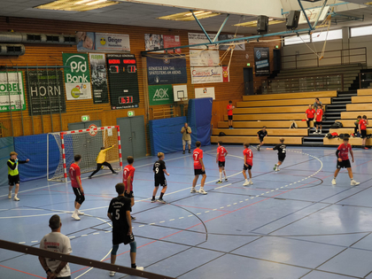 Nach der Hälfte der Vorrunde kann man als Fazit feststellen: Die Bereitschaft Abwehr zu SPIELEN muss noch deutlich verbessert werden, dagegen ist der Angriff schon auf einem sehr guten Niveau angekommen. Daran werden die Jungs zusammen mit ihren Trainern in den nächsten Wochen weiterhin konsequent arbeiten, um auch in Zukunft den zahlreichen Zuschauern attraktiven Handball zu zeigen.