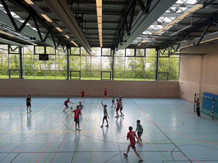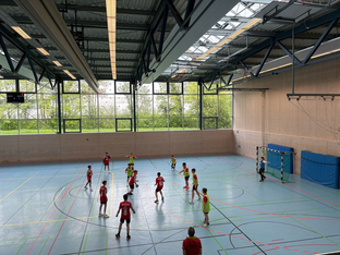 Um 10.40 Uhr begann das Turnier gegen die Altersgenossen des FC Bayern München. Nach ausgeglichenem Spiel in den ersten 5 Minuten, übernahmen die Vöhringer Jungs die Kontrolle und das Spiel konnte souverän mit 15:10 gewonnen werde. In der Spielzeit von 17 Minuten kamen alle 14 Spieler zum Einsatz.