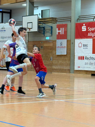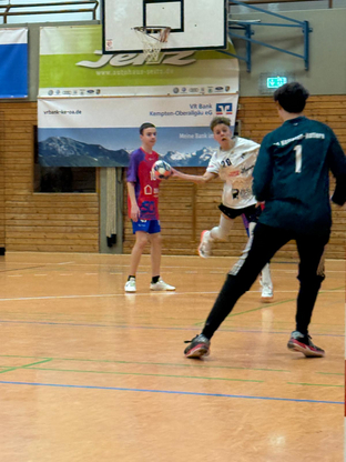 In der 2. Halbzeit änderte sich bis zur 45. Minute wenig. Die SCV-Jungs zeigten dem Publikum tollen Tempohandball und im Tor knüpfte Fridolin nahtlos die Torwartleistung der 1. Halbzeit an. So stand es 5 Minuten vor dem Ende 51:32 (!) für den SCV. In den letzten Spielminuten ließ die Konzentration ein bisschen nach und der TV Waltenhofen konnten den Rückstand noch leicht verkürzen. Am Ende gewannen die SCV-ler souverän mit 54:39.