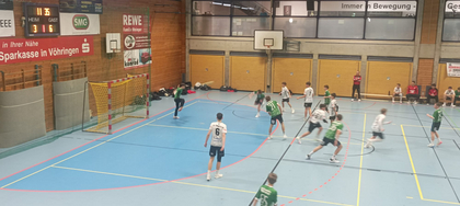 Im Halbfinale traf man nun auf die 1. Mannschaft des Gastgebers VFL Günzburg, mit dem ehemaligen Mannschaftskameraden Lennox. Auch der VFL Günzburg 1 spielt in der Saison 2025/26 in der Regionalliga. Bis zum 3:3 nach 6 Spielminuten konnten die Jungs aus Vöhringen das Spiel offen gestalten, aber 2 technische Fehler und in der Phase unglückliche Pfiffe gegen den SCV hatten zur Folge das sich der VFL Günzburg 1 absetzen konnte. Die jungen SCV-ler gaben in dem Spiel aber zu keiner Zeit auf und kämpften bis zum Abpfiff. Dennoch wurde das Spiel mit 15:5 verloren und man verpasste somit den Einzug in das Finale.
