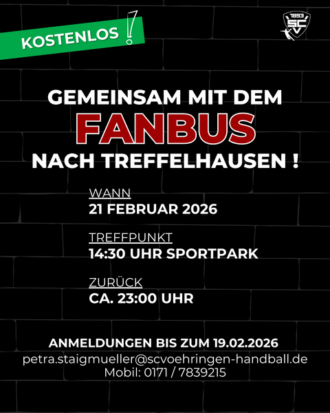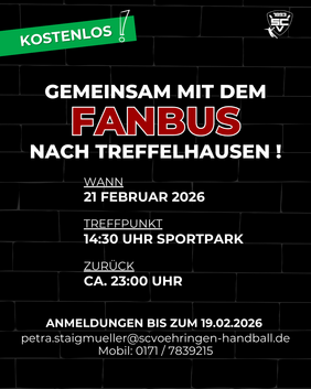 - Spielbeginn 17:30 Uhr, Busabfahrt 14:30 Uhr (Achtung Doppelspieltag - Rückfahrt erst nach dem Spiel der M1!!!)